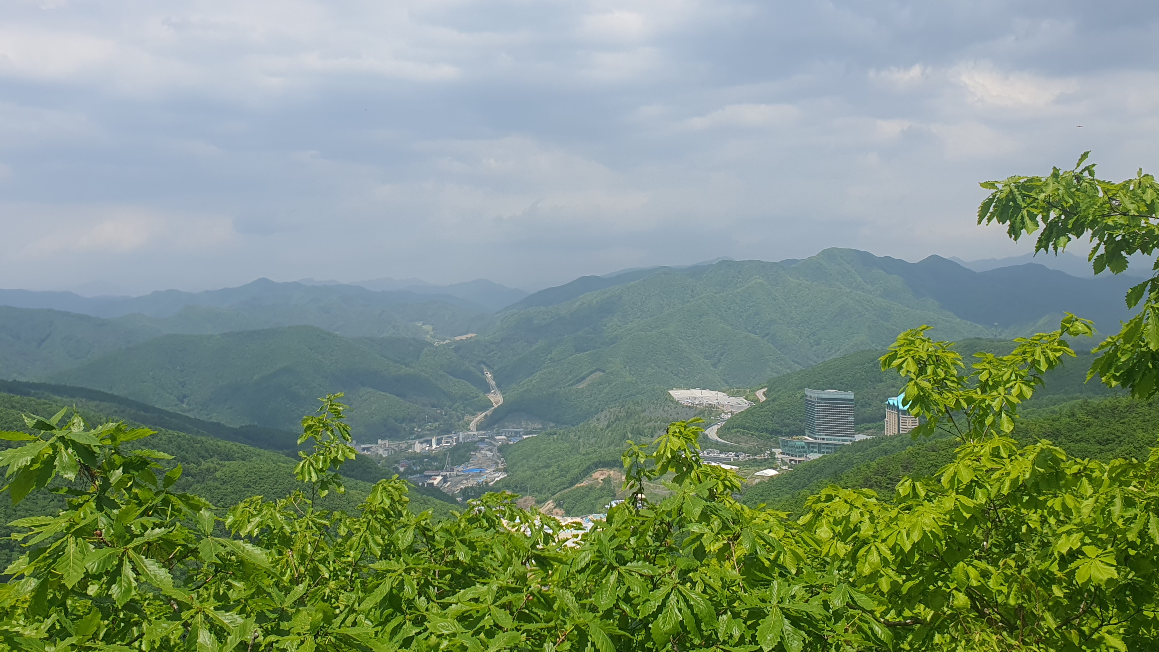 숲길을 약 30여분 걸으면 전망대가 나오는데 하이원일대가 한눈에 들어온다.