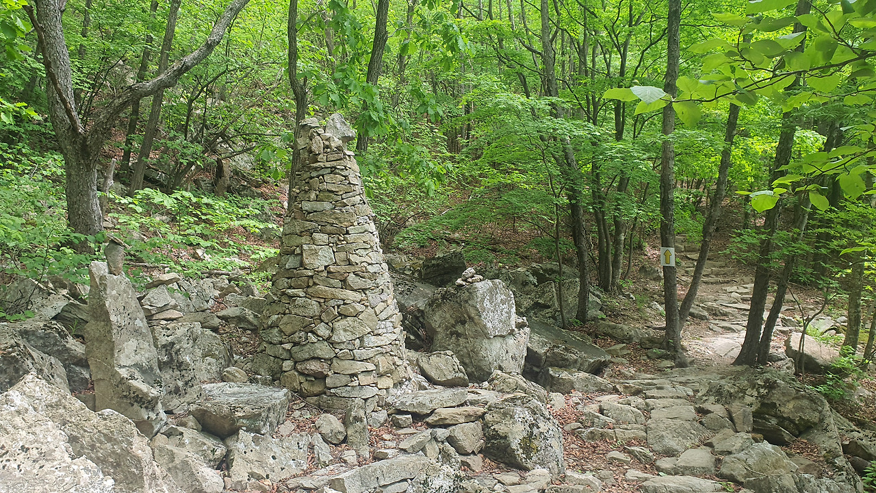 전망대를 지나면 돌탑이 자리한 계곡 곳곳에 고비류와 다양한 야생화를 만날 수 있다.